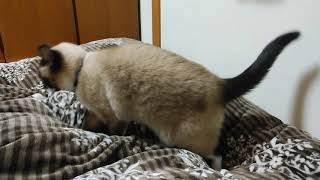 最高気温15度、最低気温10度の予報です。今の部屋の温度は、18度です。暖かいというより、サンルームにいると暑いくらいです。車に乗っていたら、窓越しには、ほんと暑くて、一枚上着を脱ぎました。今日は、ネタがないですので、昨日動画を撮っていますので、それを載せます。 昨晩、布団の上で構って~~ってしているライを撮りました。お目目が真ん丸、飛びかかってきていますね。喉をごろごろ、嬉しいのでしょう。しばらく、遊んで、ご飯を食べに階下に下りていって、後で、布団に戻ってきて、寝ました。寝る前に遊ばせるのは、あまりよくないですね。興奮しているライです。以前からずっと主人と話していた事をするために、今日はその用意をしました。私は、その事を気にとめていて、それを主人に話しました。明日には、その事をするつもりです。それは明日に書きます。にほんブログ村ぽちっとな、いつもありがとうございます。励みになります。