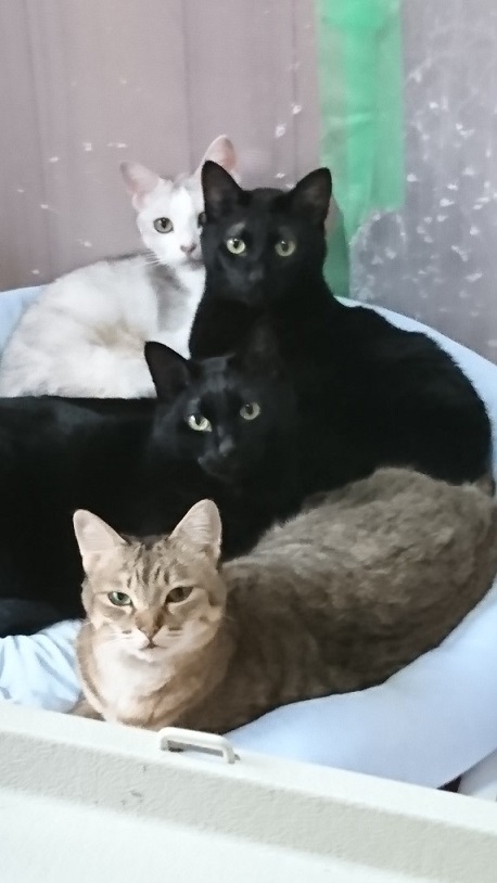 最高気温11度、最低気温3度、曇りところにより晴れの預保です。午前中は寒かったですが、午後からはコートもいらないくらいに温かかったです。車を運転している間は暖房を入れていなかったです。家に帰ってからは暖房は入れず、コタツを入れていました。コタツが入っているだけで服を多めに着ていたら暖かかったです。美容院は月に一度の間隔で予約をして行っています。白髪が出てきますので仕方なく行っていますね。でも70歳になったらもう染めなくなってしまうでしょう。今は全部を染めるのではなくて、伸びた部分だけを染めていますのでその分安くはなっています。今日もいつもの格好です。意外と時短でできました。店長がする分と男性の従業員がする分で分けているみたいです。12時半の予約だったのですが、午後1時に行きましたので、30分は遅れてしまっていましたね。ちょっと遅れて始まりました。仕方ない。でもお客さんが少なかったので良かったです。やはり平日だったからでしょう。終わったのは午後3時半近く。帰り着いたのは3時半くらいでした。ライちゃんが鳴いて待ってくれました。その後家計簿をつけてからブログを書き始めました。すぐに今から夕ご飯を作らないといけないです。主人がラインで天ぷらを買ってくるので酒の肴はそれでいいからと書いていました。じゃ~とキハダマグロの冊を買っているので、クリームシチューにしようと思っています。天ぷらはあまり私は好きではないので、キハダマグロは私が少し多めにもらおうと思っています。さて、どうなるかしら??すみませんが、今から夕ご飯作りをします。コメントのお返しはその後で。ライちゃんの兄弟です。白い子が女の子でキジがお母さん、黒猫がオス猫です。ライちゃんは4兄妹ですね。妹はライをお世話していたそうです。今はみんなともかなり大きくなっています。よく似ていますよ。仔猫たちはみんな4月に誕生日が来ます。おめでとうを言いたいです。今朝掃除などをがんばろうと思っていたのに疲れてしまっていて、いつの間にか寝てしまっていました。ライちゃんも一緒に寝ていたので癒されていました。今はコタツの中に入って寝ています。にほんブログ村ぽちっとね、いつもありがとうございます。励みになります。目が痒いのですが、やはり花粉症でしょうね。毎日薬は飲んでいます。主人と一緒に行っている耳鼻科でもらった薬です。