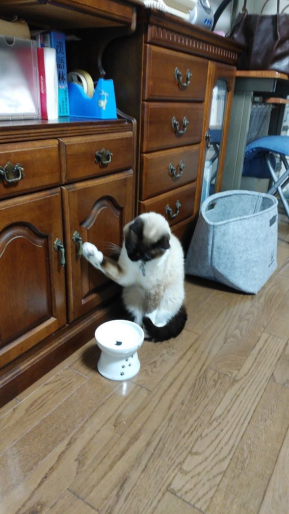 お水を飲んだ後、おもちゃ入れの取っ手をカチャカチャいわせて、おもちゃを催促するライです。
