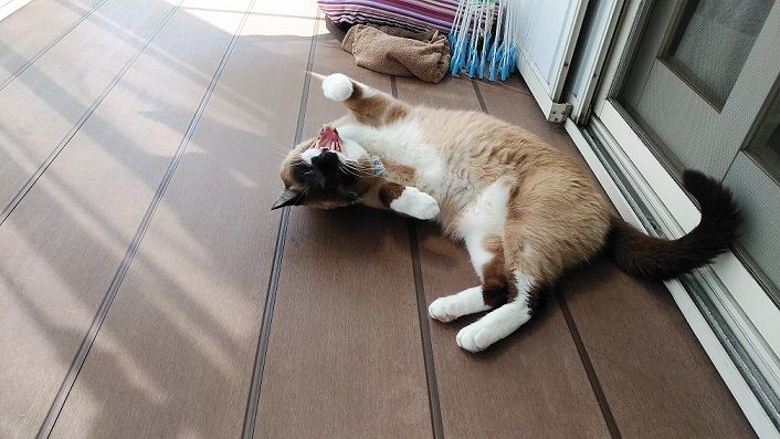 暖かいので、へそ天ですね。