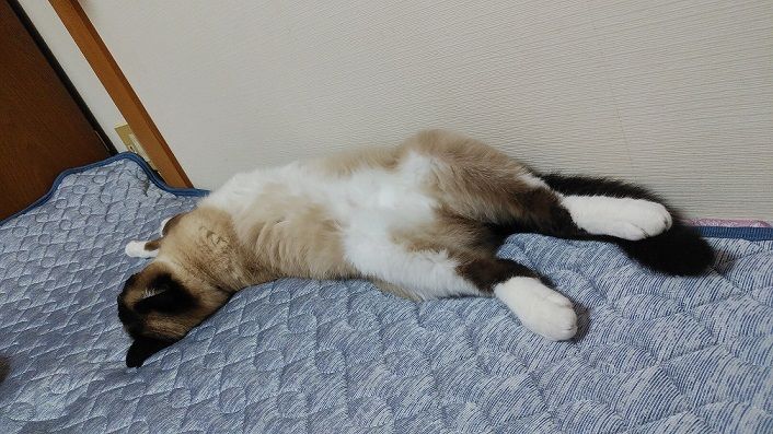 丸くなって寝るより、この格好で寝ている事が多いです。