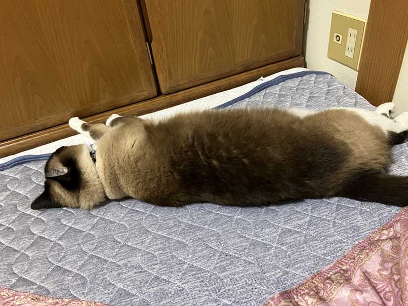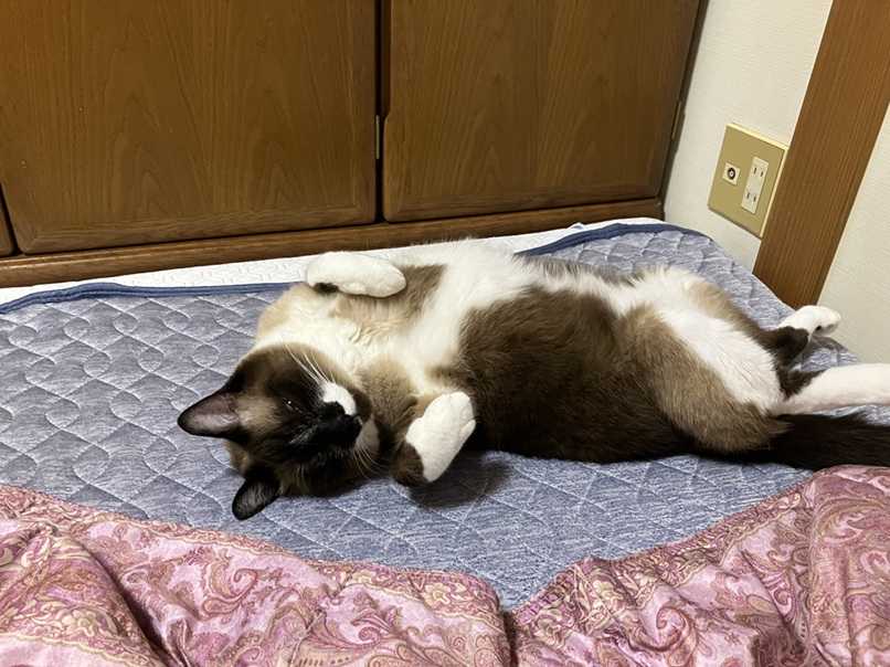 これは私の足元にいます。冷感シーツなので気持ちが良かったみたいです。