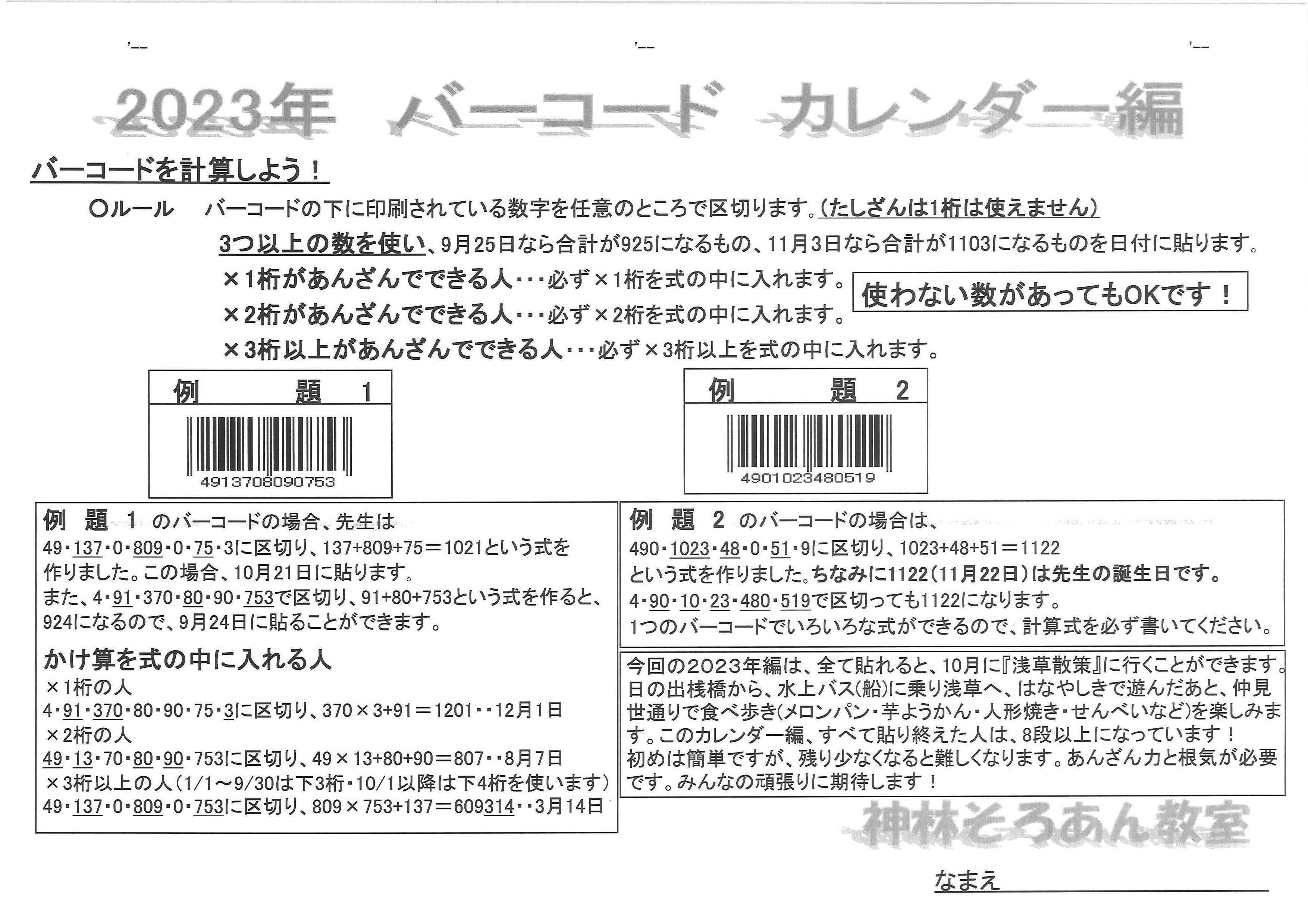 2023年 バーコードカレンダー編