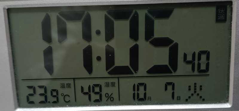 今日は在宅勤務。日中の気温がだいぶ落ち着いてきた今日この頃、室温の方もだいぶ落ち着いてきています。朝22度ぐらいでスタートし、在宅勤務が終わるころには23度ぐらいと、1度上昇ぐらいで済んでいます。湿度も50%ぐらいなので、仕事をするにはちょうどいい加減の環境になります。10月も半ばを過ぎたので、単身赴任先ではそろそろ冬の気配も感じられるようになってくるのではないかと思われますが、まだそこまでは寒くなってないような気もします。月末に向けてどうなるかはわかりませんが...--- 17:15 ---