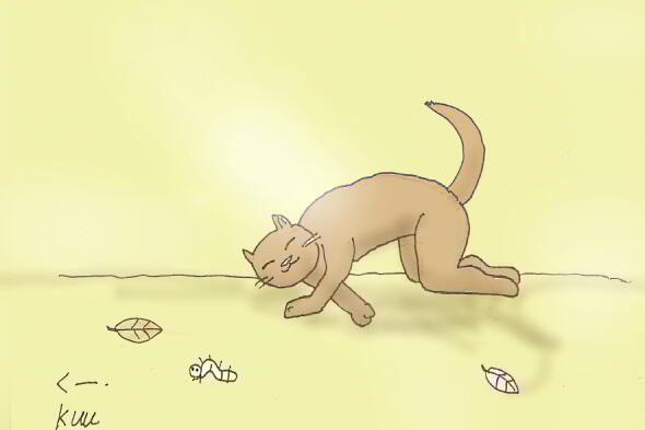 ネコのポーズはバリエーションの多いヨガポーズです。その簡単でしかも効果の高い動きをご紹介していきます。名づけてヨガネコ体操!今回は、横方向、肩のストレッチ登場ネコキャラは”ヨガネコ・くー”です。アニマルキャラでいろいろレッスンNo.2 ネコ体操☆横肩ストレッチネコのポーズから横方向の、肩ストレッチを始めましょう♪です。 四つん這いで、手のひらと膝から足の甲を 床につけて下さい。 手は肩幅、足は腰幅に開きます。 これが、キャットポーズの基本姿勢です。1・右腕を左脇の下から横へ出し顔も左を向き~支えの左肘をすこしずつ曲げ体重を下におろしていきましょう。じわじわ右肩が伸びていきます。痛くない程度の体重のかけかたをコントロールしましょう。反対の腕も、おなじようにストレッチして下さい。2・いちど休憩して次ぎに、両腕を胸の下で交差して、体重をおろしていきます。最初の片腕だけのストレッチより強く肩が伸ばされ、肩甲骨の間まで広がっていくのがわかります。ネコ”くー”のように気持ちいい顔をしてのびのび感を味わってください。 「気持ちいいにゃ♪」 ☆☆☆☆☆☆☆☆☆☆☆☆ ねこキャラ”くー”は コメントでお世話になっている ”kuuさん”から 名前をお借りしています。 ありがとう kuuさん♪# ☆☆☆☆☆☆☆☆☆☆☆☆