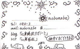今は安く印刷も出来るし家でパソコン印刷でも作れますが・・・オリジナルなものを出そうとあえて手書で書いてみました。アドレスとかが字数が多くもっと絵を入れたいんですが、見づらくなるのでこのぐらいの書きこみで止めときました。 最初にこの名刺を渡すのは誰かな?(*^_^*)
