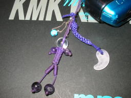 携帯ストラップにいろいろなマスコットをたくさん付けている方がいますね。そういう人からみれば、自分はシンプル派かな?よく始めてお会いする方と「青い携帯もって○○に立ってます」と目印にすることもあります。奈良のあっちゃん一行と待ち合わせしたときがそうでしたね。その携帯にはこういうストラップがついています。・紫色の玉(パワーストーンらしい)で出来た人形 エスニック雑貨屋で購入・勾玉の根付 国立博物館で購入・青い玉 娘にもらったこれを写真に取ると人と月(勾玉)、青い星が並んでいるように見えます。Mind and body RefreshingYOGA NOTEBOOKマイ携帯ストラップ`☆´公開(笑)