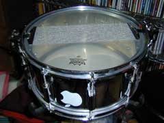 安物スネア再生計画。 昨日Bugを見た後に楽器店に寄ってヘッドとスナッピーを買ってきた。ヘッドは最近ミュート入りタイプが嫌いなのでコーテッドの厚いヤツ、スナッピーは一度試してみたかったタマの42本線を購入。 結論から言うと、やっぱりイマイチ。トーンや音の深さというか、その辺は嫌いじゃないけど、なんか変な金属臭い倍音が気になる。あと、やっぱりサウンドにまとまりが無いというか、暴れる感じ。安物の限界かなあ。もしかしたらミュート次第で倍音は抑えられるとは思うんだけど。 ラディックの方は変なことに気付いた。ヘッドの中央を叩くと音が伸びないのだ。センターを外せば胴も鳴る。どうもヘッドのクセなんじゃないかと思う。なんかリムが異様に高く感じるのもこのヘッドのせいかな。スタジオにあるLM402はリムの高さ普通(ヘッドはレモのピンスト)だからなぁ。う~ん、やっぱりエヴァンスかレモのヘッドに換えようかなあ。 あとスナッピーはコード変えても少し緩む。これも要対策。 ちなみに、俺はスネアサウンドの確認にMoby Dickの出だしのフレーズを使います。アレが気持ちよければ合格。