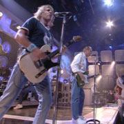 ポム・スフレさんがQuoをご存知なのに大喜びして(笑)、QuoのDVDを見ることにした。こういう希少な存在に会えるのがネットの醍醐味である。そうだよね、QAJの皆さん。 このDVDはどうも様々なTV出演を集めたもののようだ。最初のThe One and Only(DVDそのもののタイトルでもある)は2002年、Heavy Trafficリリース当時のライヴで、合間にメンバーのインタビューを挟んで構成されている。RIFFSのおまけDVDなどに入っていたTop of the Popsの映像と似たセットだが別物のようだ。どっちにしてもDVDで、しかもNTSC方式(=日本のテレビで見れる!)というのは大きいと思う。 ヒット曲にHeavy Trafficからの曲を交えて演奏しているが、今聴いてもこの時の新曲が過去の名曲に全く引けを取らない出来だと言うことがよく解る。ってーか、「新曲嬉しい!」という興奮を差し引いた今だからこそ、か。 アルバムのブックレットでリック&フランシスがテレキャスター・シンラインを持っていて驚かされた(Jam Side Downのヴィデオで使用)が、このライヴではアルバムタイトル曲、Heavy Trafficでリックが弾いている。しかし例の「リック色」ではなく普通のナチュラルのモデルなんだけど・・・ 次に入っているのが待望のオフィシャルリリース、1970年のDoing Their Thingだ。一気に30年遡るのだが、やっぱりオリジナル・クォー(ロイ・ラインズもいるし!)はスゴい。オープニングの(!)Roadhouse Bluesでの「All night long」の後のブレイク、そこから戻るシンバルのタイミングの遅さは後のどのドラマーにも無いし、出せないものだと思う。ひたすら重く、まるでシューゲイザー系のバンドの様なうつむき加減で演奏する姿は2002年のエンターテインメント性に溢れたバンドとは別物の様。 まだ緑に塗装したばかりのロッシの真新しいテレが新鮮。あとリックが弾いてるのはミュージックマスターのような気がするんだけど違う?(画像)ピックアップの位置が違うような気もする・・・。 Gotta Go Homeの途中フランシスがロンドを弾きはじめるとラインズがコードチェンジして応じるのは普段見慣れない(当たり前か。ライヴここ以外で聴いてないし)風景。格好いい。 続きは次回。
