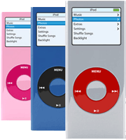 いいなあ、コレ。colorwareという海外メーカー。どーいうコトやってくれるのかは画像見れば解ると思うけど、とにかくバリエーションが豊富。本体とホイールの色を別に指定出来るのよ。俺はオレンジ+黒(または白)とかにしたいなぁ・・・とか。何が嬉しいって、黒しかない8Gのnanoも選べるし、それどころか、iPod video(30/80G共に)だって色つけ、いやいや、MacやDELLのパソコンまでカラーモデルにしてくれちゃうという、夢のサイトまで言ったら言い過ぎだろうなあ(笑) ともかく、俺の不満を全部解消してくれるサイトだね。日本に発送してくれるかは解らないけど・・・。う~ん、欲しい。問題はお金なのですよ。