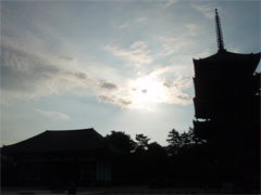 メールで更新してるのもどうかと思うが。 朝早く着いたものだから時間潰しに苦心。朝飯で上手く時間をごまかし、あとは鹿に相手して貰って事なきを得る。 予定通り糞暑いなか奈良公園を歩き回る。興福寺境内何周しただろう。東金堂と五重塔の(自己)満足な写真が撮れた。逆光大好き(馬鹿)。国宝館も2年ぶりに入ったが・・・やっぱり八部衆は全員セットで見たい!どこの博物館か知らんが早く返しましょう(一体はお隣の奈良国立博物館にあり)。 そういえば、「美しい」阿修羅像に対し、いわゆる「イケメン」(この単語はじめて書いた・・・死にそう)との比較はあまりにも平凡(?)で恥ずかしいのだが、興福寺の阿修羅って、木村拓也と結構似てる気がする。だが恥ずかしいのでこの話題は引っ張らない。 東大寺に向かう頃急に風が冷たくなり、雲行きも怪しくなってきた。南大門までは行ったのだがやっぱり不安。大丈夫とは思ったが、嫌な予感したので駅方面へ戻る。ついでに昼飯食ってたらやっぱり降り出しやがった。 小雨だから暫くふらついてたが(ジャスコにヴィレッジヴァンガードあったし)、そのうちかなり降り始めたので、少し早いが電車に乗って大和西大寺に向かい、宿へ。ダイソーで傘を買ったが何故ピンクしかない。 それで今だ。 テレビでニュース見たら京都は大雨で大変なことに。近畿一帯明日までこの調子…?明日どーすんべ。