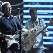 エリック・クラプトンという人のライヴを見てきた。 ジョージやらセイバーズ・オブ・パラダイスやら聴いてから東京に向かい、まずは予定通り市ケ谷でスタジオ入り。なんか予約に手違いがあったらしいが、無事入れた。危うい。細かい言及はあえて避けるが、俺は思ったより役立たずではないらしい。 一休みしてから武道館へ。はじめての武道館で完全におのぼりさん状態の自分が悲しい。その悲しさを楽しんでたのだけど。フーの時と全然違って、グッズ売り場は凄く楽だったのでパンフを入手。ドミノズのTシャツは魅力だったけど、XLサイズがない為断念。 客席に着くと、かかっている音楽がなんかベタベタの「60~70年代ベスト!(1000円)」みたいな感じ。I Can See for Miles, Parachute Woman, Dear Mr. Fantasy, Black Magic Woman, Burning of the Midnight Lamp, Yer Blues, Oh Well, I Ain't Superstitious , Street Fighting Man等・・・こういう客入れBGMで知らない曲が一切かからないというのははじめてかも知れない。 予習した通りのTell The Truthでスタート。いや、コレが予想以上で。なんかね、俺が思ってたより遥かに熱いんですよ。あと2コーラス目を女性コーラスが歌うのかと思ってたらドイル・ブラムホールが歌ってたのが好感度高し。 Key to the Highwayはドミノズヴァージョンじゃなく、ずっとテンポが速かった。BBとやったのがこのアレンジなの?Hoochie Coochieはまあ、あんな感じ。でもコレも予想してたよりずっとハイテンションで、ロックしてた。エイブか? 次はSheriff。コレはウィリー・ウィークスが余計なコトを一切弾かないでグルーヴを出しまくってたのが格好良かった。実は主役。 さて、問題はここ。そう、この日はHere But I'm Goneだったのだ。カーティス・メイフィールドのカヴァー。いや、実はコレが凄く格好良くて、レコード化して欲しくてたまらんのだけど、しかしなぜ今日Pityをやらない。ジョージの誕生日だよ?おかしいんじゃないか、とも思ったが、ジョージの古くからの友人であるエリックは明日25日がジョージの誕生日だと思っている可能性もある。 そして来ました!Why Does Love Got to Be So Sad!今日の目玉です。俺はコレを聴きに来たの!しかしイントロの「Yeah Yeah Yeah~」を一緒に叫ぶ客は居らず。俺だけ!?すげー浮いたが後悔はしていない。とりあえず踊り倒した。いや、去年の映像とか、大阪の音源とか(なまゆさんありがとう)聴いて「端正になっちゃったなぁ」と思ったケド、生で見ると熱量が全然違う!なんかコレも予想以上に良かった。感激した。ってーか俺右の方にいた客、この曲で席を外してやがった。馬鹿じゃねえの。 その勢いでアコースティックセット。Driftin' Bluesで手拍子してる客、センスねえぞ。エリックが(戦前ブルーズマンのごとく)平気でリズムを外してくるとあっさりおいてきぼりを食らう。だっせえ。 Travelin' Aloneは知らない曲(未発表曲らしい)。変な曲。コレもレコード化して欲しいなぁ。That's Alrightも知らないブルーズで、アーサー・クルーダップ(またはエルヴィス)ではなかった。あと、コーラス隊がステージ上で椅子に座ってるんだけど、なんか「一番いい席の客」って感じで良かったなぁ。 Motherless Childは良かった。エイブの複雑なリズムが気持ちよい。しかしこの人は本当に嬉しそうにドラムを叩く。エリックは12弦アコースティックにカポつけてたけど、開放でかき鳴らしてたけどアレってオープンチューニング?12弦でオープンってするの(そりゃあ可能だろうけど)?面白いサウンドだった。Running on Faithはちょっとつまんなかったかな。悪くはないんだけどねえ。俺の好みじゃないだけかも。 再びエレクトリックに戻り、エイブが「あの」リズムをこれまた楽しげに叩き出す。Motherless Childrenだ。俺の斜め前くらいのおばさんがすげえ嬉しそうだったんだけど。いい曲だよね。俺も大好き。個人的ハイライトパート2だね。まあ、コレは完全にエイブが主役でしょう。 次はロバート・ジョンソンのQueen of Spades。コレが長尺になるという話は聞いてたんだけど、いやぁ、クリス・ステイントンが弾くこと!もう弾き倒す。弾き始めたら止まらない勢い。いや、俺この人はもっと「縁の下の力持ち」的キャラだと誤解してた。こんな前に出てくる人とは思わなかった。もうすげー弾く。他の曲でも弾く。凄かった。圧倒された。まあ、長さ的にはドイルも同じくらいで、肝心の(笑)エリック氏はワリとあっさりひと回しで終了。この構図は次のBefore You Accuse Meも同じ。勿論ステイントンがやりたい放題なのも同じ。 思わぬ収穫はWonderful Tonight。いや、実は俺、Before You Accuse meで本編終了って気分だったのよ。あとはヒット曲、予定調和セクション。しかも甘いバラードのこの曲、個人的にはそれほど好きではない。特に80年代のあの「のたーっ」としたヴァージョンの印象が強いから。 しかし、エイブがハイハットを細かく刻むリズムを叩き始めた瞬間「あれ?」と思った。そう、コレはオリジナルヴァージョンの、ジェイミー・オ