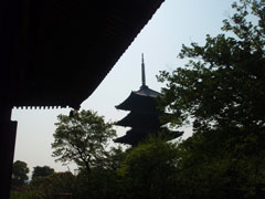 駄目だ!足やっぱ痛い!明日仕事どーしよう(笑)真っ先に「死語と」って変換されるのはやっぱり俺がOut of 社会人(OOS)だからでしょーか。OOSなので先のことを考えて遊んだりしません。とりあえず横浜でチケットを受け取り、藤沢で眼鏡を受け取って来た。電車賃と缶コーヒー2本しか金使ってないや。レコード屋さん寄る気力、ってーか体力、いや、脚力無かった。 でも今回感動的だったのは、あれだけ歩いても結局腰に来なかったってコトだな。歩いたし、深夜バスだったのに。Ko-Ryuより健康的かもしれん(笑)。 写真パート2。 東寺の金堂を講堂の軒下から。 典型的(笑)東寺の五重塔、煽って逆光で空。まあ五重塔を撮れば放っといてもそうなるんだけどね。 で、こういう絵面(笑)。解りやすいでしょ。要するに写真のセンスが無くても何となくソレっぽい(どれっぽいのかは不明)感じになるアングルってのが好きなんだな。簡単だから。よく考えればソレは俺のデザインの方針と同じであり、基本的に引き出しが無い分野はこういう風になる、って話だ。あ、ちなみにコレは三十三間堂。ここで例の「通し矢」ってのをやるワケね。