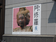 阿修羅展に行って来た。ホントは休みを取って行くつもりだったんだけど、どうも来週いっぱいは休めなさそうなのと、来週中に行かないと八部衆と十大弟子の一部が奈良に帰ってしまうというのではやめに行く必要を感じたのだ。 今日みたいに天気がよくて暖かい日はクソめんどくせー混み方するに決まってんので開館時間に入れるように上野に向かう。iPodにAsh Ra Tempelを入れてくれば良かったな、とも思ったが今日の気候にジャーマンプログレは合わない。実際にはTSCとかヌーンデイ・アンダーグラウンドをたっぷり放り込む。 あえて上野公園を突っ切って国立博物館に向かう。既に場所取りしてる花見客いっぱい。何故か人生ゲームをやってる奴らがいる。 9:30に着いても既に入り口は行列。誘導している美人のお姉さんが麦わら帽子をかぶっていて素敵さが違うベクトルに20%アップ。結局館内に入れたのは50分くらい。まあまあかな。 今回何故わざわざ見たかったかというのは、実際この阿修羅展のウリでもある「仏像がガラスケースに入ってなくて、360°見れる」ってのに大きく惹かれたのと、あとはタイミングが悪いと意外に興福寺でも見れなかったりする「八部衆が全員揃う(ただし4/18まで)」っていうコト。 八部衆も他の諸仏も、正面は興福寺で何度も見ているから、折角なので側面、背面をたっぷり見る。なにがどう、ってのも俺の感覚だけだから文章では洗わせないけど、エラい面白かった。それから(胸から下が欠損している)五部浄(画像)の腕が展示されていたのが凄く興味深かった。初めて見た。 やっぱり展覧会のタイトルになっている通り阿修羅は別格扱いで、他の七体と並んで展示されていなかったのは残念。でも、やっぱり、別格、かどうかはともかくとして明らかにこの像は「違う」んだよね。 だいたい不思議なのは、阿修羅は基本的に好戦的な神格で、戦いの神の一人でもあるのに何故か他の七体と違って甲冑を着ていない。緊那羅や乾闥婆の様な楽神が甲冑を着ているのにね。上半身裸で、布をまとって、あの表情で、そして八体で唯一胸の前で合掌する姿はまるで「仏」の様だ。 で、八体並んじゃうと、その腕を広げたボリューム感のせいもあって他の七体が阿修羅の眷属みたいに見えちゃうんだよね。本来は釈迦三尊の更に眷属として、八体同格として周囲に奉られていた筈の像なのに、コレはその存在感が突出してしまっている。なんだか凄くバランスが悪いんだ。これがいったいどういうコトなのかは全然解らないんだけど。 金堂の本尊以外、薬王、薬上菩薩と四天王も来ていて、これも背面がたっぷり見れた。しかし今興福寺行ったらつまんねーだろうな。四天王の光背は炎が燃えている形に造られてるんだけど、コレが本尊から風が吹くかのようになびいて造られてることにはじめて気付いた。 最後にCG(なぜか終始「ヴァーチャルリアリティ」と表現)で興福寺の伽藍や阿修羅の造形を見せる映像が上映されてたんだけど、これで「リアルに作る部分とデフォルメする部分の対比で神性を表現」(大意)と言う様なことを言っていたのだけど、これと、あと本館の常設展示を見てて思ったのはやっぱり日本人ってデフォルメ表現が上手いんだろうな、というコト。 漫画とかってさ、明らかに日本美術の延長線上のものなんだよね。それは屏風絵とか、特に絵巻なんか見ると明らかすぎるくらいなんだけど、実はこういう仏像とかの表現も既にそういう部分が凄くいっぱいあるんだよね。遠近法を考慮して頭を大きく作った大仏とか、この阿修羅にしてもまぶたをリアルに作る反面鼻の穴が無い。コレはもう明らかに漫画と同じ手法の記号表現じゃん。 そんなコトを思いつつ昨年の夏以来の仏像を堪能して来たワケですが。常設展示は写真撮影が(一部を除き)出来たりして太っ腹だな~、と思う一方、(常設展は)iPod小音量で聴いたまま見てたんだけど、仏像見ながらリンプは異常なほど似合わないな、と思ったり。 帰りに出口で「現在阿修羅展は入場制限中です」と叫ぶ係員を見て、早く来といて良かったなぁ、と思った。実際、館内二周したんだけど二週目の時は既にもう込み合っててじっくり背面を見れる状況じゃなかった。 二周目の頃には中学生か高校生(女子校?)の団体がいたんだけど、「中金堂再建予定2014年」ってのを見て、「ずいぶん先のことが決まってるんだな」とか言っていた。お前等には5年後は「ずいぶん先」なんだね。5年なんかすぐだぜ。あとどうもこいつら、5年後に造りはじめていきなり完成するくらいに思ってるフシがある。阿呆、もう工事始まってて(まだ下準備レベルかな)完成まで5年かかるんだよ。 まあ何にしても、休日に行くなら朝一。絶対です。