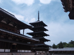 結局予定変更。 朝乗った電車が意外に法隆寺行きに丁度良かったのが運のつき。駅に着いてみればコレまたすぐに法隆寺行きのバスが来る。素晴らしいタイミングだ。 しかし、バスを降りたら暑い!どーいうコトだー!ってくらい。でも曇天覚悟だったから、雲は多くても青空が見えるのは素直に嬉しい。 法隆寺、中宮寺を例によってセットで見た後、法輪寺、法起寺へ歩く。いや、距離も景色も寺も散歩には最高!法起寺は特にまったりしたな。中宮寺と法起寺には亀もいた。 でも暑い! 法起寺から最寄り駅(徒歩20分)を歩きつつ、このまま炎天下歩き続けたら倒れる!と思った段階では既に水浸しのミニタオルが二枚。お気に入りのベン・シャーマンも塩を吹く。ちょっと間違えると熱射病って方向性も有り得る雰囲気だったので、薬師寺/唐招提寺は今日は諦める事にする。 明日、明後日、時間は充分にある。もう一度奈良に来ても良い!身体が大事!と、撤退を決めた。幸い宿は15:30チェックインと伝えてある。夕方以降は京都でのんびりする方針。