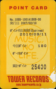 自慢から。画像をご覧ください。 「こんなこともあろうかと」長年溜め続けたタワーのポイント。モンティ・パイソンのボックスの時に使いそびれたポイント。遂に解放する時が来た。記念としてスキャンして残しておくことにしたのだけど。数年にわたって溜め続けたものだから、今後もうこれだけ莫大に溜まることは無いだろうなあ(解らんけど)。何だか勿体ない様な気もするが、使わない方が勿体ないことをうっかり忘れがちなのがポイントカードである。溜めることが目的化する瞬間って、無い? まあ現状ステレオボックスは品切れ中なので再入荷後ってコトになりますな。タワーだと輸入盤は25800円だからほぼ無料!日本盤でも、実は「タワレコイン」が2枚あるから10%Offにして1万円しない!? まあ、溜め続けるとかえって使えなくなるんだけど、この用途って圧倒的に正しいと思うな。なんか本当の意味で、「還元」って感じだ。俺に還元。(タイトルの使い方の意味は完全に間違っています)