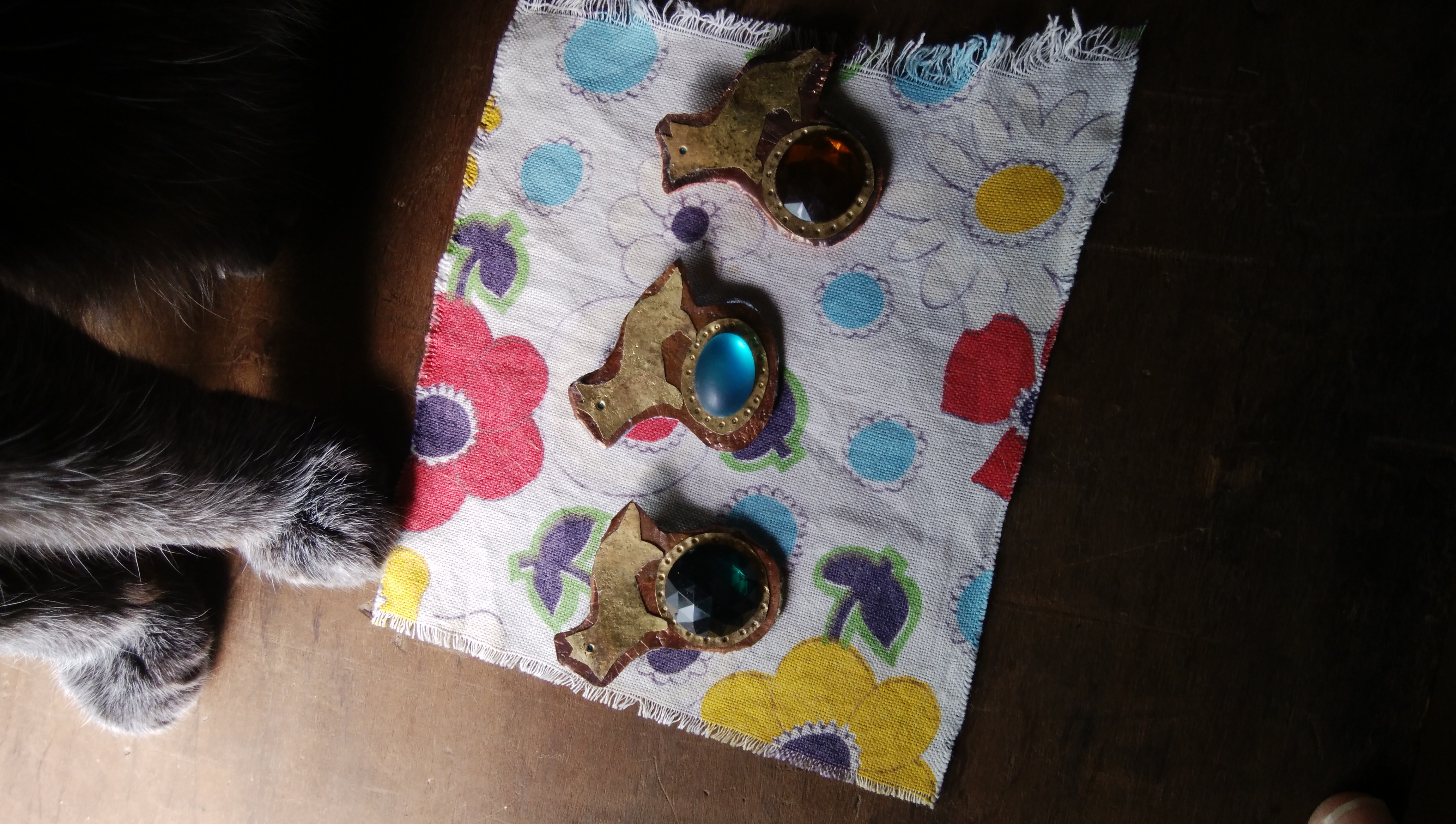 ルルのブローチを作ってみました。 家にあった真鍮とカボションを組み合わせて、…