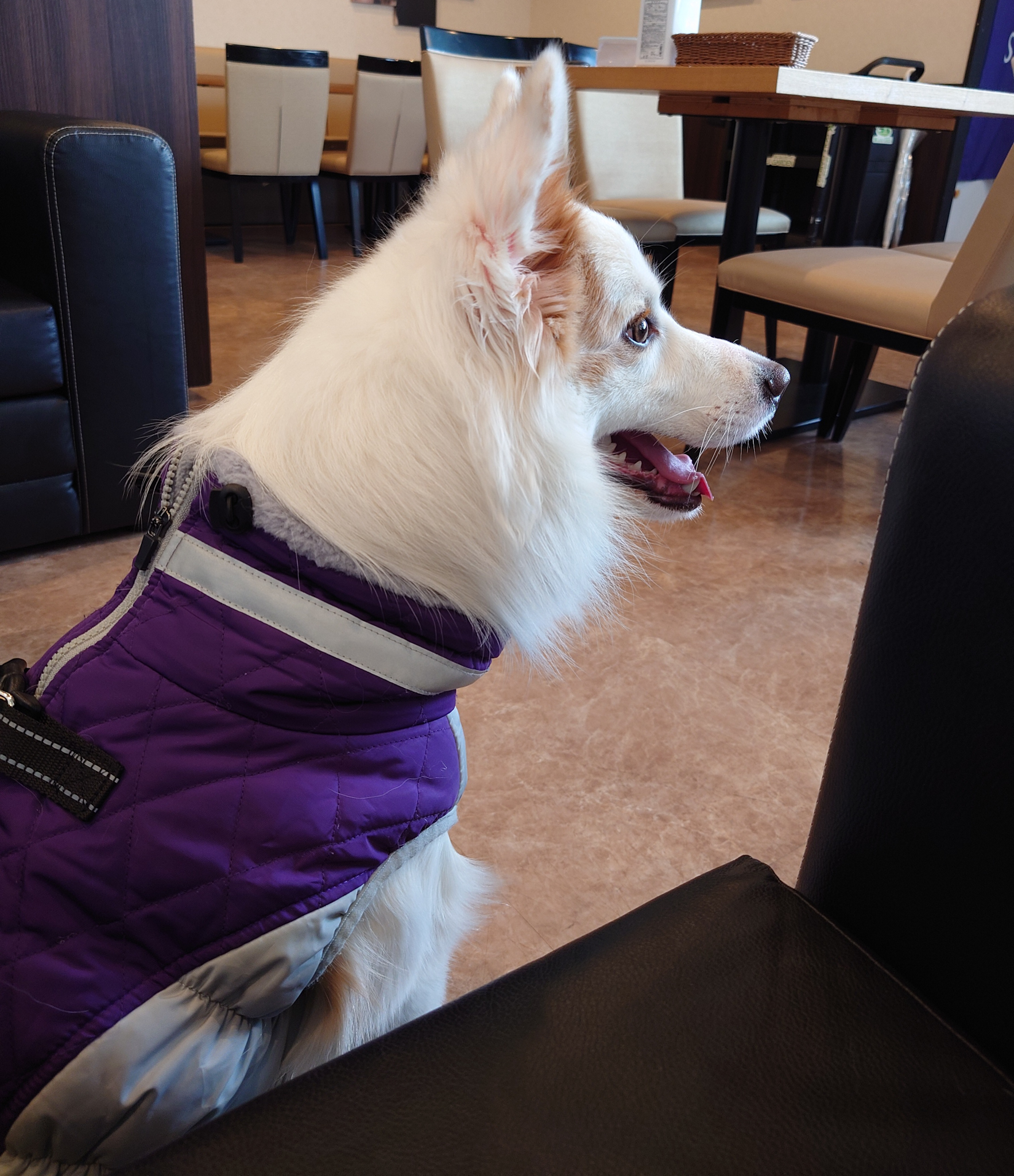 ドッグランの隣にあるカフェで、カフェに初めて入ってみましたが、大人しく待てしてくれました。