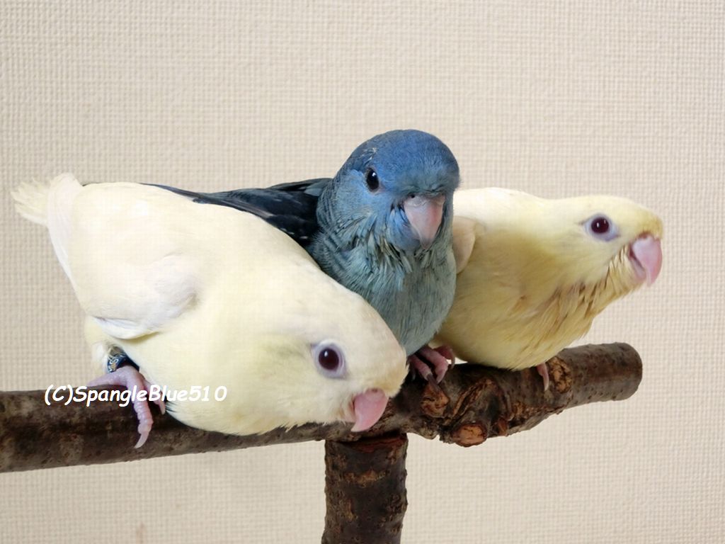 2025年 春の繁殖 里親募集は、本日4月30日をもって終了させていただきます。ありがとうございました。3羽そろって一列並びの記念写真を撮りました。目線はバラバラ、頭の高さもバラバラ、ぜんぜんじっとしてくれなくて、なかなかいいお写真が撮れませんでしたが(笑)。 Instagram インスタグラム spangleblue2022ほぼ毎日更新。ブログ未公開の写真や動画も載せています。 ブログランキングに参加しています にほんブログ村人気ブログランキング応援していただけると飼い主とインコちゃんの励みになります!