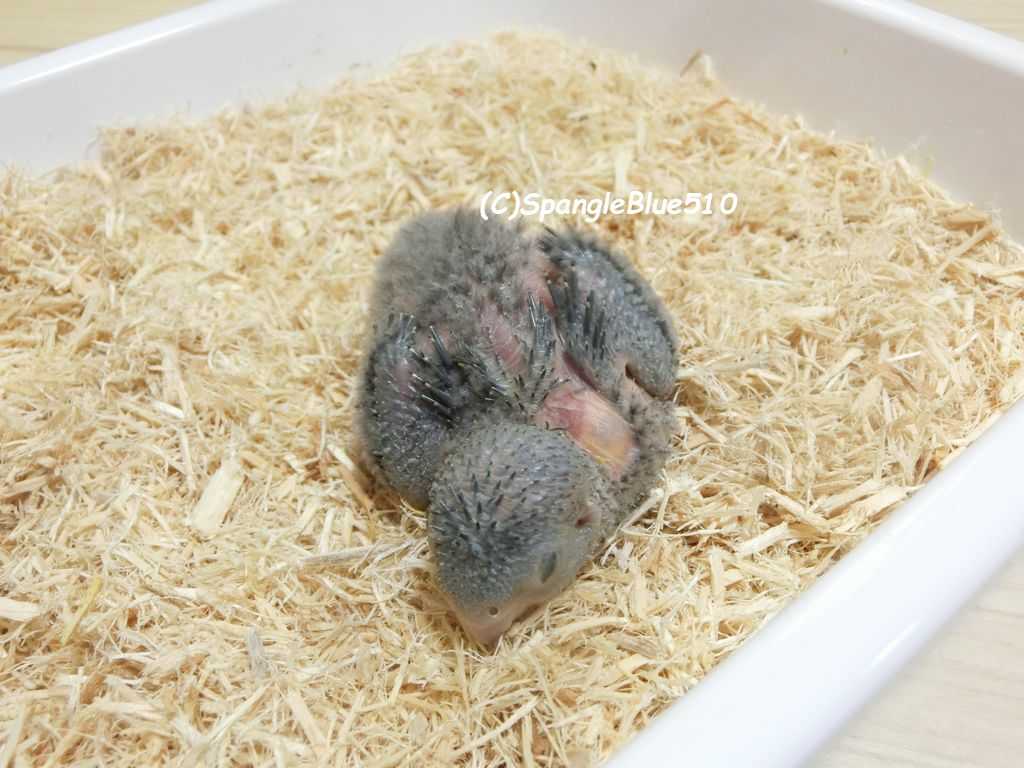 今日4月8日、サザナミインコのヒナが巣箱からデビューしました!!■サザナミインコ チームB 両親: モーヴ/イノ ♂ クリームイノ dd or Dd ♀ ヒナは1羽鳥種:サザナミインコカラー:コバルトかモーヴ性別:不明生年月日:2024年3月25日お名前: 2024年2号、春2号(仮称)備考:卵を8個もうみましたが、孵化したのは1羽だけでした。でも、1羽でもうまれてよかったです。しっかりした大きなヒナです。 非売/NOT FOR SALEたいへん残念なことですが、3月20日の日記でお知らせした第1弾の春1号ちゃんは、孵化後数日で☆になりました。残りの卵4個も孵りませんでした。毎回、体格のいいかわいいヒナを3~4羽うんでくれるベテランペアなのですが、今回はどうしたことか。生き物の世界はわかりません・・・つきましては、今春の里親様募集はありません。今日からは、両親から離れて、この小プラケースのお家で暮らすことになります。一人っ仔だから、ちょっと寂しいね・・・挿し餌1日5回。すくすく元気に育ってほしいです!! ブログランキングに参加しています にほんブログ村人気ブログランキング 応援していただけると飼い主とインコちゃんの励みになります!