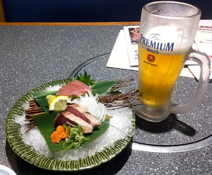 ↑かごの屋の生大、まぐろと鰹のタタキ