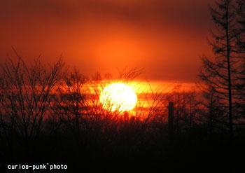 今日は朝からいいもん見っけ太陽近いって思いました 木の枝のてっぺん辺りに来たときにはチョット、離れた感じになったけど 朝なのに夕焼けみたいにキレイでした