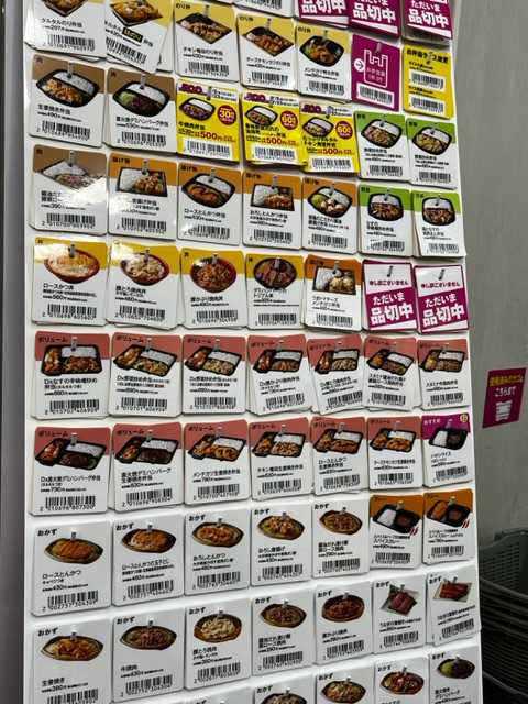 お弁当のカードがたくさんぶら下がっていて