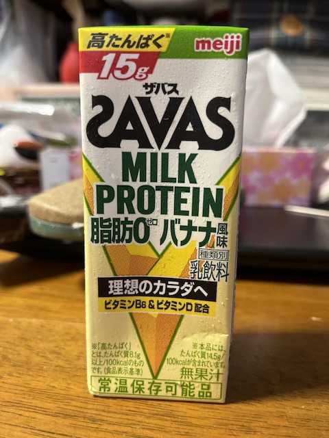 今朝の朝ごはんはプロテインドリンクとツナの入ったパン。