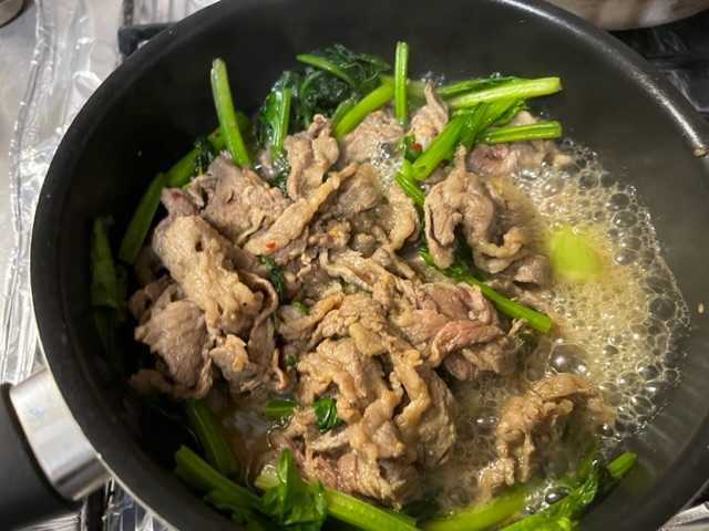 夫の好きな肉野菜鍋と息子の好きな焼肉で晩ごはんです。
