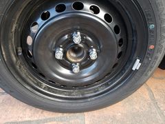 今までタントに使っていたスタッドレスを、N-boxにも使いまわしたいと思います。両者のスペックは以下の通り。タントのホイールサイズ[DBA-L375S] X・2WD・CVT - Spec Tankhttps://spectank.jp/whl/006101487.htmlフロント155/65R14、リヤ155/65R14 のタイヤが使用され、リム径はフロント14インチ、リヤ14インチ、リム幅がフロント4.5、リヤ4.5、オフセットは、フロント+45 mm、リヤ+45 mmです。 ホイールピッチは100 mm、ホイール穴数は4 穴、ハブ径は、54 mm です。N BOXのホイールサイズ[6BA-JF3] 2WD・G Lホンダセンシング・CVT - Spec Tankhttps://spectank.jp/whl/003105443.htmlフロント14インチ、リヤ14インチ、リム幅がフロント4.5、リヤ4.5、オフセットは、フロント+40 mm、リヤ+40 mmで、このホイールにフロント 155/65R14、リヤ 155/65R14 のタイヤが使用されています。 ホイールピッチは100 mm、ホイール穴数は4 穴、ハブ径は、56 mm です。ということなので、数値上は問題なさそう。社外品ホイールならハブ径2mmの違いも大丈夫でしょうし、インセットで5mmほどホイールが内側に入るのも、まあ誤差の範囲。で、実際に交換をしようとして、ホイールキャップも外したんですが、ここでようやっと重大なことに気づきました。あっ!ホンダ車は球面座ナットだったんだ!ったく、何年ホンダ車のオーナーやってんだ・・・球面座ナットのホンダ純正ナットは、60度テーパーの社外ホイールには使えませんので、慌てて買いに行くハメに。私が買ったのはM12xP1.5、ヘッドサイズ19mmの全長27mmショートタイプです。ホイール ナット M12P1.5-19HEX 16個セット ToYota Honda Mazda Daihatsu Mitsubishi 送料無料1898円★03-0116とりあえず無事履けました。今の所、普通に走れています。インセット5mmの違いですが、純正鉄チン夏タイヤを後ろから見たらこんな感じ。一方、今回のスタッドレスアルミホイールは違いが分からない・・・ほぼ誤差持ち比べてみると実感するのが、純正鉄チンホイールの重いこと重いこと!どこかにアルミホイール転がってないかなぁ・・・次タイヤ交換する時はアルミ付きにしよう。ナットで慌てなくていいし。サマータイヤ アルミホイールセット 新品 4本SET ◆共豊 スマック VI-R KYOHO SMACK VI-R◆155/65R14 14インチ (155-65-14)新品特選輸入タイヤ バランス調整済み! パーツではごきげんよう。