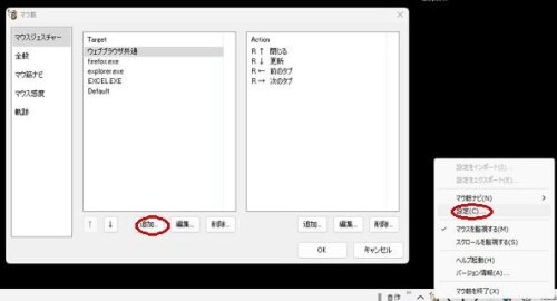 昨日の続きになるんですが、今までCornerTopicというフリーソフトを使い、画面の上端・下端にマウスカーソルを持っていくと仮想デスクトップ画面が切り替わるようにしていました。今CornerTopicはダウンロード出来ないようです。そもそも本当はデスクトップのドラッグで画面を切り替えたかったんですよね。そこでOpenMauSuji(マウ筋)というマウスジェスチャーツールを入れてみました。https://freesoft-100.com/review/openmausuji.htmlやりたいことは、デスクトップ上でのドラッグでの仮想画面切り替えです。つまりexplorer.exeに対し、ドラッグでショートカットキーCtrl+Win+左矢印(右矢印)を発動するよう設定すれば良いわけです。マウ筋をインストールし、アイコントレイに出てきたアイコンを右クリックして設定を開きます。「マウスジェスチャー」を開いて、「Target」の下の追加ボタン押し、ファイル名にexplorer.exeを入れます。あとはそのままでOK(ファイルとマウスメッセージ横取りにチェック)。追加されたexplorer.exeを選択した状態で、「Action」の下の追加ボタンを押します。「Rボタン」を押して「↑」をクリック。(アクションにR↑が入る)実行コマンドの下の「追加」を押し、 キーを押し続ける でwindowsキーを押す キーを送る でCtrl+左矢印キーを押す キーを離す でwindowsキーを押すの3行を設定します。R↓も同じように設定しますが、キーはctrl+右矢印にします。これで、デスクトップ(あるいはエクスプローラのウインドウ上)で、右ボタン押しながらマウスを上下にドラッグすると仮想デスクトップを切り替えできます。ちなみにショートカットキーを3段階に分けて送るのは、windowsキーのショートカットがOpenMauSujiでうまく設定出来ないからです。そこでまずwindowsキーを押しっぱなしにした状況を作り、さらにCtrl+矢印キーを押すことで実現させてます。最後にwindowsキーを離す設定をしないと、ジェスチャが終わったあとも押しっぱなしが継続されるようで、キーボードをいじると動作が暴走します(笑)これねー、めちゃくちゃ便利ですよ。なんで純正でこの動作を設定してくれないんだろうか・・・?ただし、この設定だとctrl+ドラッグショートカットを作る事ができません。そこでR+→にapplictionキーを送るのとSキーを送るの2つを登録して右ジェスチャーでショートカットを作る動作を割り当てたりしてます。こんなのがあれば、それはそれで便利かも。【11日まで限定価格+P2倍】【日本正規販売代理店】Elgato エルガト Stream Deck ストリームデッキ ライブコンテンツ作成コントローラ ライブ配信 Youtube Twitch キーボード アクションキー 左手デバイス 動画編集スタンド ショートカットキーボード ゲーム配信 配信機材せっかくなので、いくつかマウスジェスチャーを登録してみました。OpenMauSujiではインストール直後にはブラウザの動作が登録されています。これはOperaブラウザの動作を元にしているようですが、Operaに馴染みもなくちょっと煩雑に思えたので、単純にドラッグの上下をページ更新とタブ閉じるに、左右にタブ切り替えを設定しました。右回り(←↑→↓)で履歴表示なんてのも。ショートカットキー時短ワザ大全 早く帰るコツは”手元”にあった! [ 辻村 司 ]それよりも、エクセルが実は便利かも。Targetのファイル名にExcel.exeを入れ、 上下左右のジェスチャーでウインドウスクロール 左上のジェスチャーでホームに戻る 左下、右下のジェスチャーでタブ切り替えを設定しました。超絶便利なんですけど~マウスジェスチャー、侮れない。ウェアラブルリング型マウス VANZY(バンジー) 指マウス エアーマウス ジェスチャーマウス bluetooth(YBT)【送料無料】【海外×】【ポイント20倍】【2/22】ではごきげんよう。