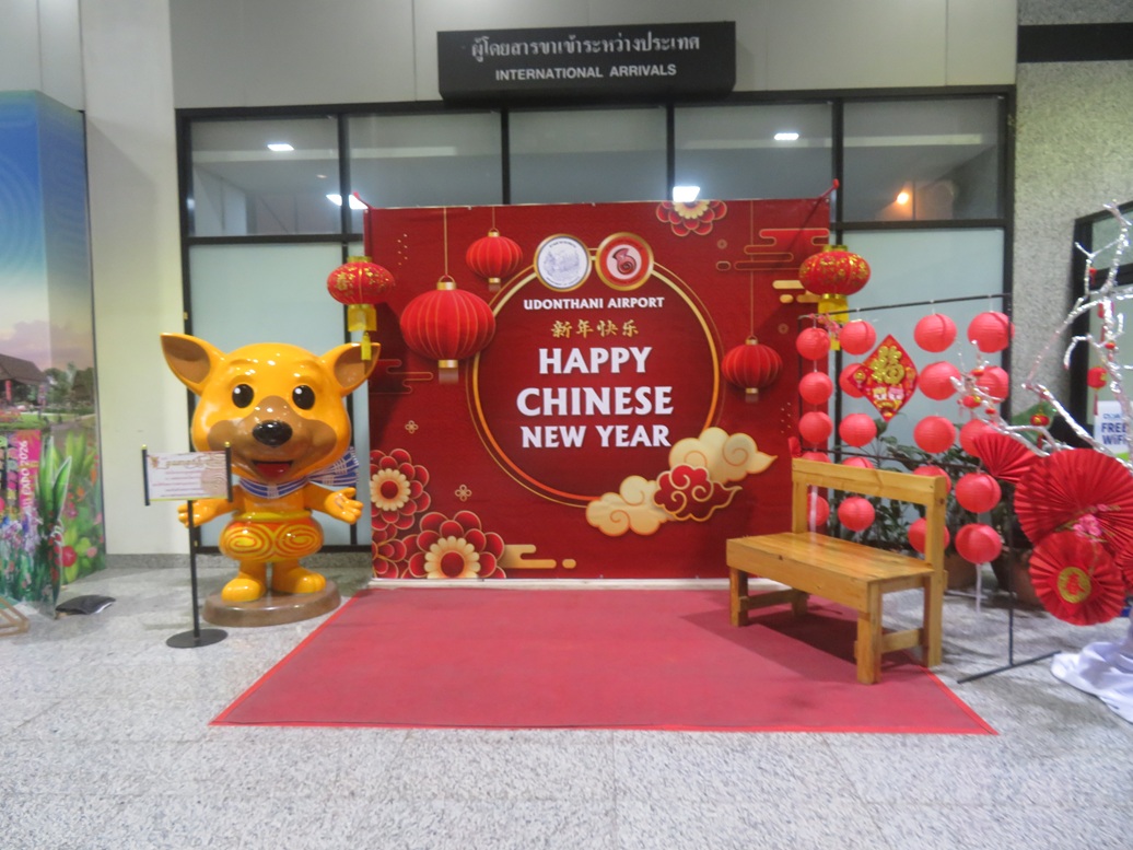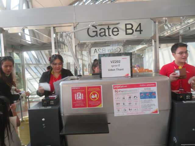 エアポートレールリンクはスワンナプーム空港に到着しました。ちょうど春節前のスワンナプーム空港。チェックインカウンター。ベトジェットはタイ国際航空と同じBアイランド。チェックインは既に済ませて、預ける荷物はないのでそのまま進みます。4階から一気に2階へと下りていきます。TGのロイヤルシルクラウンジも春節の雰囲気です。出発案内でゲートを確認。16:50発VZ202はB4ゲート。動く歩道です。よく二人並んで立っていて、後ろから追い越せないことがありますが、平気で並んで立っている人って周りの人の迷惑というものを考えないのかと思ってしまいます。B1~B9ゲートまでは110m。さらに歩きます。バンコクに来るとよく歩くのでいい運動です。B1~9ゲート入り口が見えてきました。ここから左です。