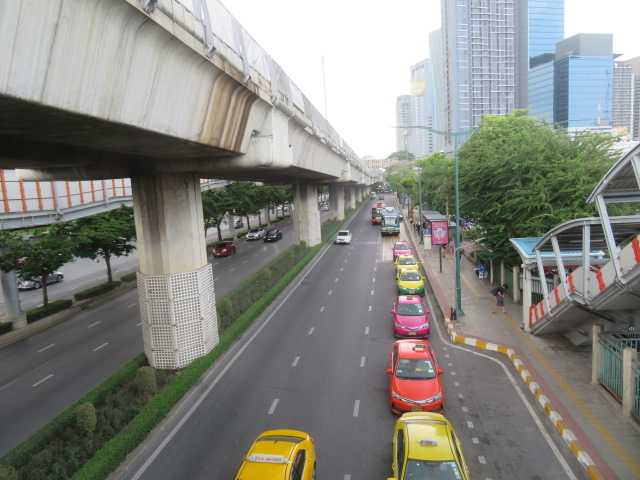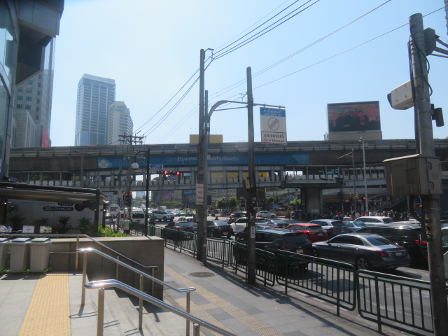 モノレールピンクラインのワットブラシ―マハタートに到着してここで乗り換えです。モノレールピンクラインとBTSスクンビットラインの乗り換え駅。向こうに見える特徴のある建物はラチャパット大学プラナコン校。スクンビットラインのホームにやってきました。そして下りたところは買い物のためにやって来たプロンポン駅。フジスーパーで買い物をして、ホテルまではBTS一駅なので歩いてホテルに戻りました。スカイウォークです。ここから右に曲がるとホテルが見えます。ターミナル21です。間もなくホテルに到着です。