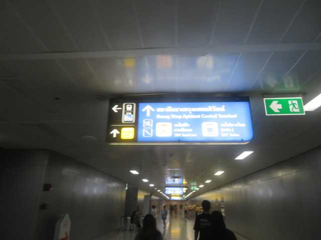 チャトチャック公園前のバス停。そこからMRTのチャトチャック駅へ。駅の構内で何やらイベントをやっていて賑わっています。そんな中を通って改札へ。そしてホームに向かいます。環状線なのでいつもどちらへ向かうと近いのか確認します。何度来ても覚えませんね。MRTのチャトチャック公園駅です。これからMRTのバンスー駅に向かいます。バンスー駅は2番ホームから。電車がやってきて乗り込みました。わずか2駅でバンスーえ駅に到着です。ここからタイ国鉄SRTドンムアン行に乗り換えます。案内に従ってバンスー駅をめざします。この連絡通路の先にバンスー駅はあります。