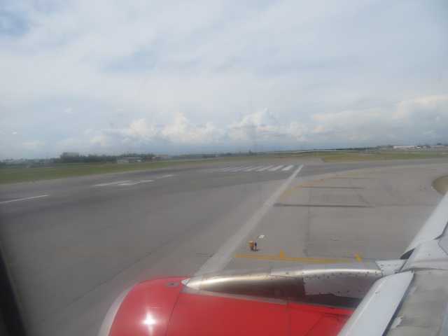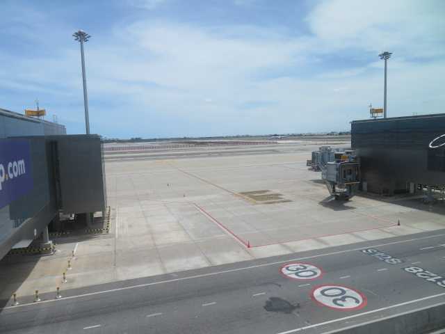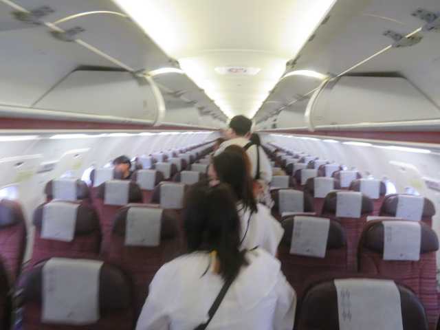あれあれ、搭乗機はまだ来ていませんね。エバエアの特別塗装機が見えました。搭乗機の到着を待ちます。遅れているようです。そしてやっと搭乗開始。ベトジェットもゾーン制の搭乗方式。ゾーン3なので最後の搭乗です。ボーディングブリッジへはエスカレーターで下へ下ります。長いボーディングブリッジ。搭乗機はあそこです。機内に入り着席しました。窓からはカタール航空機とその向こうにエミレーツ航空の尾翼。プッシュバックされて見えてきたのはカタール航空機が2機並んでいました。タイから中東への路線が充実していますね。プッシュバックされスポットを離れました。ここから自走して滑走路へ向かいます。メインターミナルに見えるのはルフトハンザ航空機。アルエルイスラエル航空機も2機並んでいます。