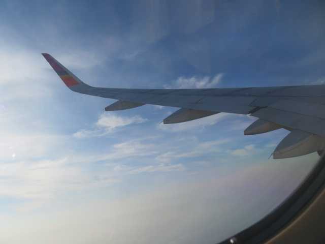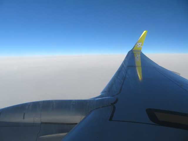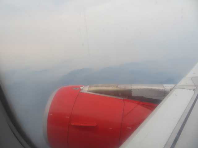 機内に入ります。バンコクまでよろしくお願いします。座席から後ろを一枚。ちょうど翼の上になります。前にはエンジンが見えます。安全ビデオが始まりました。ポケモンのカモネギですね。ピカチューにピチューでしょうか。後ろは何?ピカチューもちゃんとシートベルトを締めています。機外へ脱出した後ピカチューが真っ先に逃げていますね。ライフベストの着用方法についてです。ドアが閉まり機体はプッシュバックされていきます。滑走路へと向かいます。そして離陸しました。ほぼ定刻での離陸でした。バンコクまで6時間のフライトです。バンコク到着が早朝4時半。