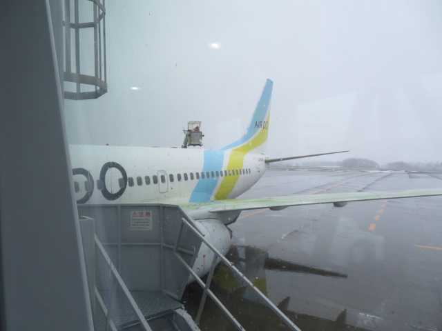 7月に入りました。西日本の早い梅雨明け。東日本の梅雨明けも今年は早いのでしょうかね。ゲートに向かいます。ANAスターウォーズ特別塗装機とその向こうにエアドゥが見えます。女満別までのフライトは500番ゲート。バスラウンジからの出発です。500番ゲート。女満別行定刻16:45発。エアドゥHD79便。NH4779便との共同運航便です。この日は4月1日。まだコートを羽織っている人もたくさんいましたね。そろそろ搭乗開始でしょうか。搭乗開始になりバスに乗り込みます。バスで搭乗機へ行く際の優先乗車ってどうなんでしょうね。意味ありますかね。早く座れる?搭乗機に到着してタラップを上がります。ドアの右側にエアドゥのマスコットキャラクターベアドゥが描かれています。外は雨が降っています。そういえばここ数年の一時帰国は天気が良かったことがないような気がします。タラップが外され滑走路へと向かいます。離陸開始です。雨が窓を後ろに向かって勢いよく流れていきます。離陸しました。そして灰色の雲の中へ。尾翼に描かれたベアドゥ。搭乗機は上昇を続けます。
