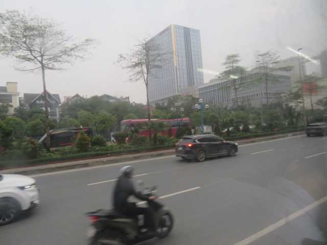 90番のバスでハノイ市内へ向かっています。ロッテのビルが見えました。ロッテホテルとショッピングモールの入った複合ビル。信号で一旦停止です。車窓から通りの風景を撮ります。時間は間もなく5時半になろうとしています。バイクが元気に走っていきます。ベトナムのケンタッキーが見えます。湖沿いを走ります。夕方車やバイクが増えてきました。グーグルマップで場所を確認しながら。そろそろカトリン駅だと思うのですが。ノーヘルの多いタイと比べるとベトナムの方は皆さんヘルメットをかぶっていますね。