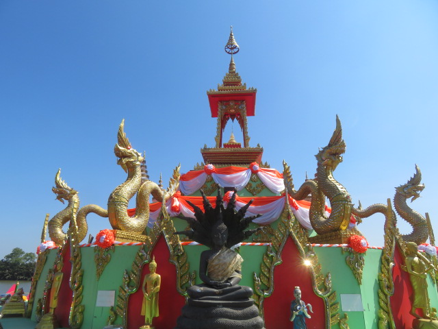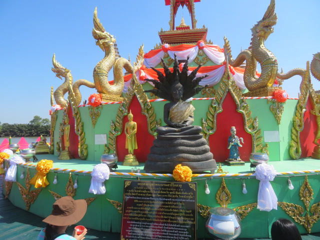 蓮の島には9匹のナーガを背にした仏像が。