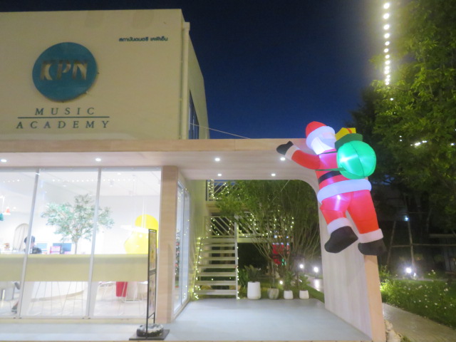 ミュージックアカデミーの屋根に上ろうとしているサンタさん。