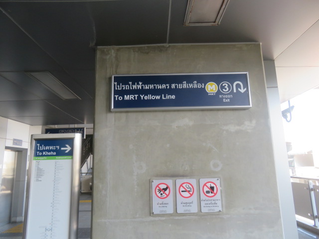 MRTイエローラインへの乗り継ぎ案内があります。出口は3番から出るようです。