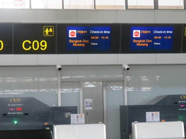 フライトごとチェックインタイムがあるようですね。タイエアアジアは9:30からチェックイン開始。