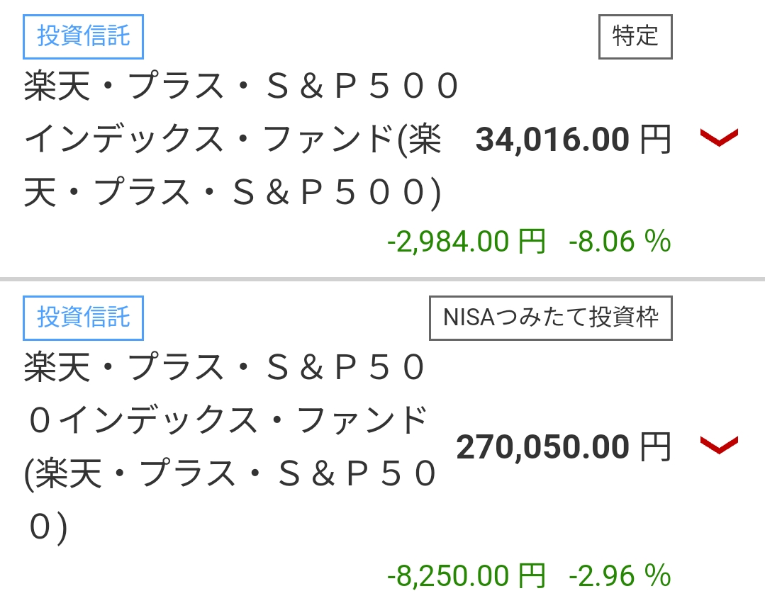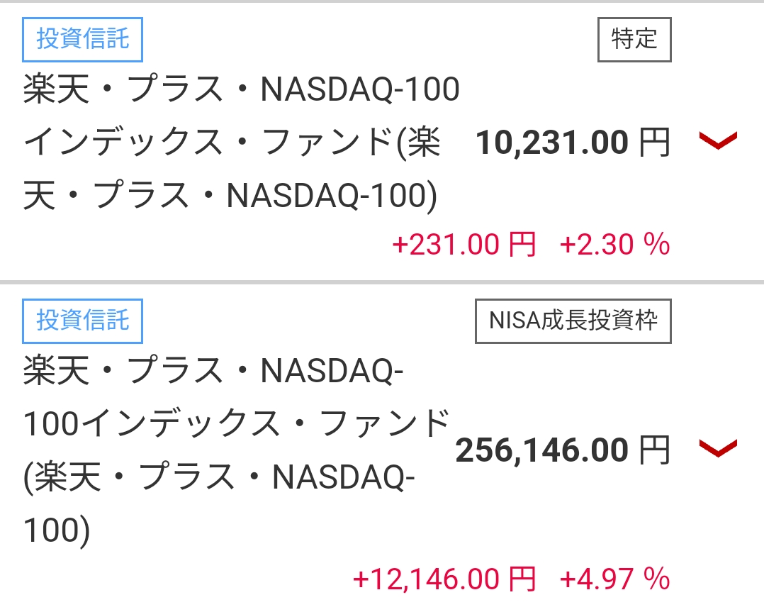他にも特定口座でつみたて投資してる楽天NASDAQ100も少しだけ回復。