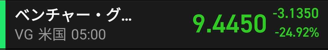 手持ちのVGもビックリするくらい大暴落して含み損に転落。