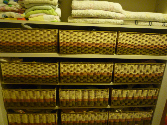 家族が一人増える為、洗濯棚の整理をしました。こちらが、整理前。整理したのは、2010年7月なので、10年ぶりの整理です。整理後がこちら。何が変わったって?籠ケースが4段から5段に変わりました。写真じゃ、写せなかったんですよ・・・。同じ籠を探したんですが、どうしても見つけられませんでした。『かご』 籠 カゴ バスケット 店舗什器 小物入れ 小物収納ケース 収納ケース おしゃれ かわいい 可愛い アジアン シンプル ナチュラル 編み 生地付き 布付き ペーパー 角型 スクエア 小さい 小さめ 小型 コンパクト ミニ 軽い 軽量 リビング ダイニング妥協なんですよ、こちらのカゴにしたのは。でも、どんなに探しても見つけられなくて一番サイズが近いモノを選びました。3個追加購入したのですが、そのうちピッタリの籠を見つけたらそちらに変えるかもしれません。ちなみに、この籠には、下着類が入っています。1人一段づつ。そして、この場所は、下着類の物干し場を兼ねつつ反対側に洗濯機があるので洗濯が終わったら、下着類はこの場所に干し、乾いたら籠に適当に畳んで放り込むというこの場所だけで完結する家事動線となっているので私にとって、この場所に下着置きの籠があることは重要事項になっています。後、タオル類は我が家では洗濯乾燥機を使っているのでこちらも乾いたらそのまま畳んで棚に置くという動線になっています。前はタオル類は外に干していましたが旦那様が花粉症であることや、ベランダ目の前の通りがトラックの往来が多く埃っぽい事何より、ベランダまで干しに行くという動作自体が無駄だと思えたので私の家事負担を減らす為にタオル類は乾燥機で乾かすというコストをかけることにしました。ただ、頻繁に乾燥機を動かすのも、もったいないのでバスタオルは、フェイスタオルより少し大きめのスリムバスタオルを使う事で二日に1回のペースで乾燥機を動かすようにしています。セール ゆうパケット タオル スリムバスタオル ワンコイン プレゼント (シャンスポワール)写真には写せませんでしたが一番上には、大掃除の洗剤等を置いています。この位置は、私の身長だと踏み台が無いと届かない場所であるため普段使わないものを置く事にしました。次の段に、セリアのカトレケース スリムL型 を9個並べました。入浴剤や洗濯ばさみ等をそれぞれのケースに入れています。現在1ケース分が空のままですがこれは、使っているうちに埋まるかもしれないし、埋まらないかもしれない。けど、ギリギリで収納スペースを作るよりは余裕があるほうがイレギュラーに対応できるしなにより、気持ちよくシンデレラフィットしたのでここは、フィット優先にしました。この場所は、私の家事をいかに効率よく処理するかの言ってみれば、「キモ」ともいえる場所です。この場所が無いと私の家事のルーチンワークが乱れるしこの場所さえ押さえておけば玄関掃除、お風呂掃除、洗濯の3つが手間なく回るようになっています。というか、この場所を整理することが私の家事動線のルーチン化を整理するキッカケになったのかもしれません。そんな大事な場所が、とりあえず、家族増加に耐えられる仕様に変更できたことが本当によかったです。おかげ様。日々の生活に感謝を。にほんブログ村***月のリズム 2020/09/16 03:38~ 月は「おとめ座」にかかっています***やってあげる、助けてあげるを最初にやってはいけません。先回りは必要ないのです。やってあげたくなったらまず、見守る事です。信じる事です。自分で考え、行動し、足りない部分を助けて欲しいと声に出す。このプロセスは、助ける方も、助けられる方も忘れてはいけない大事な事です。次の月のリズム 2020/09/18 03:57~ 月は「てんびん座」にかかります。