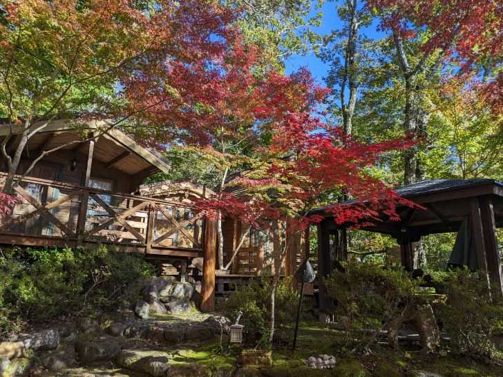 スターヒルズの広い敷地には沢山のモミジの木があり、新緑の季節は鮮やかなグリーン、秋の紅葉の季節は赤や黄色のグラデーションの景色に変化します 今年ももうすぐ紅葉シーズンがスタートです今現在は、少し紅葉が始まっている様子が見られているので、見頃ももうすぐなのでは・・・こちらはキキの家の露天風呂からの紅葉の様子ですキキの家はアウトドア向けのコテージです お庭でバーベキューをしたりして秋の休日を楽しんでみてはいかがでしょうか スターヒルズホームページ