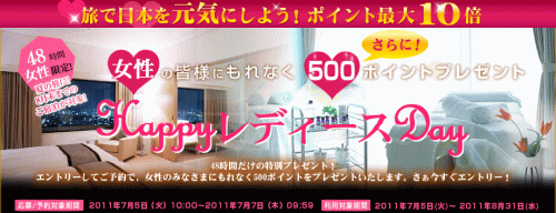 こんにちは!スターホテル東京です楽天トラベルでポイント10倍保証!得旅キャンペーン開催中です現在開催中の「得旅キャンペーン」にエントリーいただくと、以下の対象期間に該当する当館の全プランが「ポイント10倍」になります!■エントリー/予約対象期間:2011年7月4日(月) 10:00~7月9日(土) 9:59■宿泊対象期間:2011年7月15日(金)~8月15日(月) ※8月15日チェックアウト分までエントリーはこちらポイント10倍保証!得旅キャンペーンさらに、さらに女性の方には、耳寄り情報を48時間限定!HAPPYレディースDAY 同時開催中こちらもエントリー後の予約で【もれなく500ポイント】プレゼント▽キャンペーン応募/予約対象期間: 2011年7月5日(火)10:00~2011年7月7日(木)09:59 ▽宿泊対象期間: 2011年7月5日(火)~2011年8月31日(水) ※8月31日チェックアウト分まで エントリーはこちら48時間限定!HAPPYレディースDAY夏休みの家族旅行も出張でのご予約もキャンペーンを上手に利用してポイントをお得に貯めちゃいましょうキャンペーンのエントリーが済んだらスタホ☆彡を予約新宿駅西口 徒歩3分 スターホテル東京スターホテル東京もつぶやいています@starhoteltokyoこちらもよろしく楽しいメルマガ配信中!!