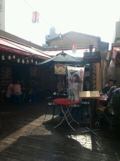 4日に学校友ママと行ってきました。待ち合わせはお店の前。先についていた友達から「いままでで最高の人出かも」と覚悟を決めて降りたら~ほんとにすごい人・人・人歩道の人がなかなか進みません。おばちゃん、お嬢さん、おじさん、お兄ちゃん、子供、幅広く。普段行列を見たことないお店にもすごい人が並んでる。みんな一体いつご飯たべれるのだろう・・・私たちの目的のお店はドンキーの横の道の 「韓国屋台村」へ行ってみたら行列なく。席が空いている。2軒ならんでいてパラソルがある「ドンドン」 へ中と外が選べるので天気がいいから外。でも日光は敵ですからね前の人の食器とかはおいてありましたが、座っていいとのことでそのときは店員さんが一人しか見当たらず忙しそうなので自分たちで食器を片付けて何注文する~?来るときから「ヤンニョムチキン」が食べたいな~と思っていたら友が「ヤンニョムチキン」と言い。注文を済ませた後に来た友達も食べたいと思っていてびっくりでした。あと、トッポギとチゲどれもこれもおいしい。辛さが私にはちょうどよく。生マッコリ、どんどんすすみます気づくとこのお店にも行列が。韓国人気を感じますね~~食事が終わったらお買い物。今日の家族の夕食の買い物してぶらぶらして次のお店へBS11の韓ラブでよく使っている「辛風」へあっ空いてると思ったら予約でいっぱいになっていて入れず、すぐ近くの「チョンソン」 へ氷マッコリの文字にひかれて入りました。ここもあっという間にいっぱいにここではサムギョプサルセットとマッコリのみいただき。お店を出たのは8時すぎ。外のライトが明るくて日が暮れているのに気がついてませんでした。1時に待ち合わせをして7時間。楽しい一時を過ごしてきました~~氷マッコリ シャーベットみたいで危険です