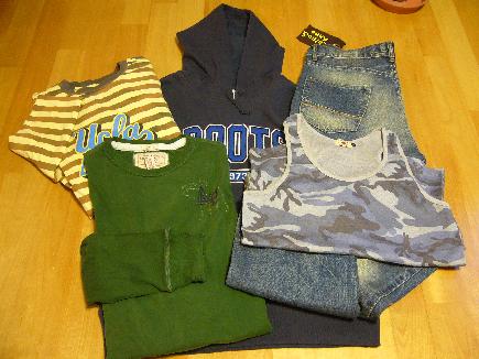 今日も福袋ネタバレです。年末年始にかけジーンズの入った福袋を買い漁りました。何と手に入れた数 4本。。。嫁さんに『10年間は太れないね。』と言われてしまいました。確かに今年は調子にのりすぎました。ちょっと反省入っていたものはジーンズパーカーロンT 2枚タンクトップ 新春大売り出し! 詰め込み新春福袋解禁[FOR MEN] 福袋2007 初売りセール2007ん~、価格が価格だったのでこんなものでしょう。ロンTの一枚はアバクロ???でした。この時期、売れ残りの福袋の値下げが横行してますね。この福袋も値下げになっていました。で、悲しい話はこの福袋を購入してから起こりました。何と、これより商品点数が多い福袋がこの店舗でオークションに出ており安く落札されていました。。。 ショック【追記】ここのジーンズはかなり太いです。いつも31なので30か32で迷ったのですが、太かったです。(ちょっとメタボリック入ってます。)購入を検討されるかたは注意です。【追記2】あまり商品の作りはよくありません。数で勝負という方にのみお勧めします。