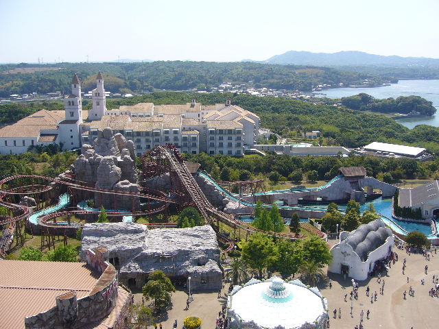 予定通り、パルケエスパーニャに行ってきました。現地から携帯で投稿しましたが、戻ってきて見てみると。。。なんじゃこりゃという写真でした。失礼しました。持ち帰った写真です。フライングドンキホーテ(地上45M)から撮ったホテル志摩スペイン村です。いや~、天気も良く快適な旅行でした。スリリングな名阪国道とのんびり伊勢道、どちらも渋滞無く走れました。現地からの投稿でも書きましたが、利用者が思った以上に少ないです。『近鉄さん!!あやめ池遊園地のようにはなりませんよね。。』空いているのはある意味嬉しいですが、ピレネーを何度も乗ろうとは思いませんしね。宿泊はホテル志摩スペイン村だったのですが。。。食事が最悪でした。都ホテル系列なのにもっとがんばってほしいな~これじゃ、三流ホテルの食事ですよ。さすがにサービスという面では従業員の方すべてに教育が行き届いているという感じでした。